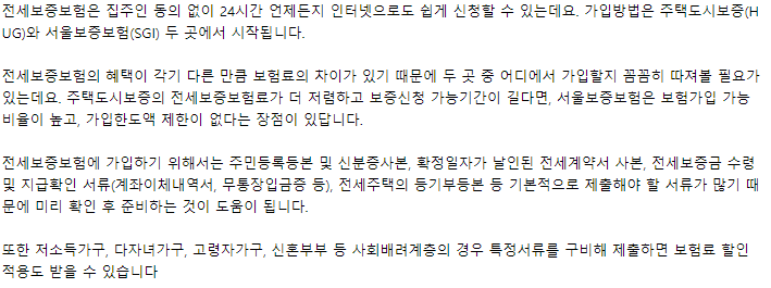 -. 계약기간은 1년 이상 -. 보증금은 수도권 7억/기타지역 5억원 이내 (안심대출시 수도권 5억/기타4억 -. 공인중개업자와 계약관계인이 함께 작성, 날인할 것 |